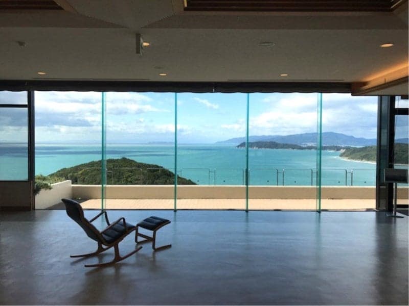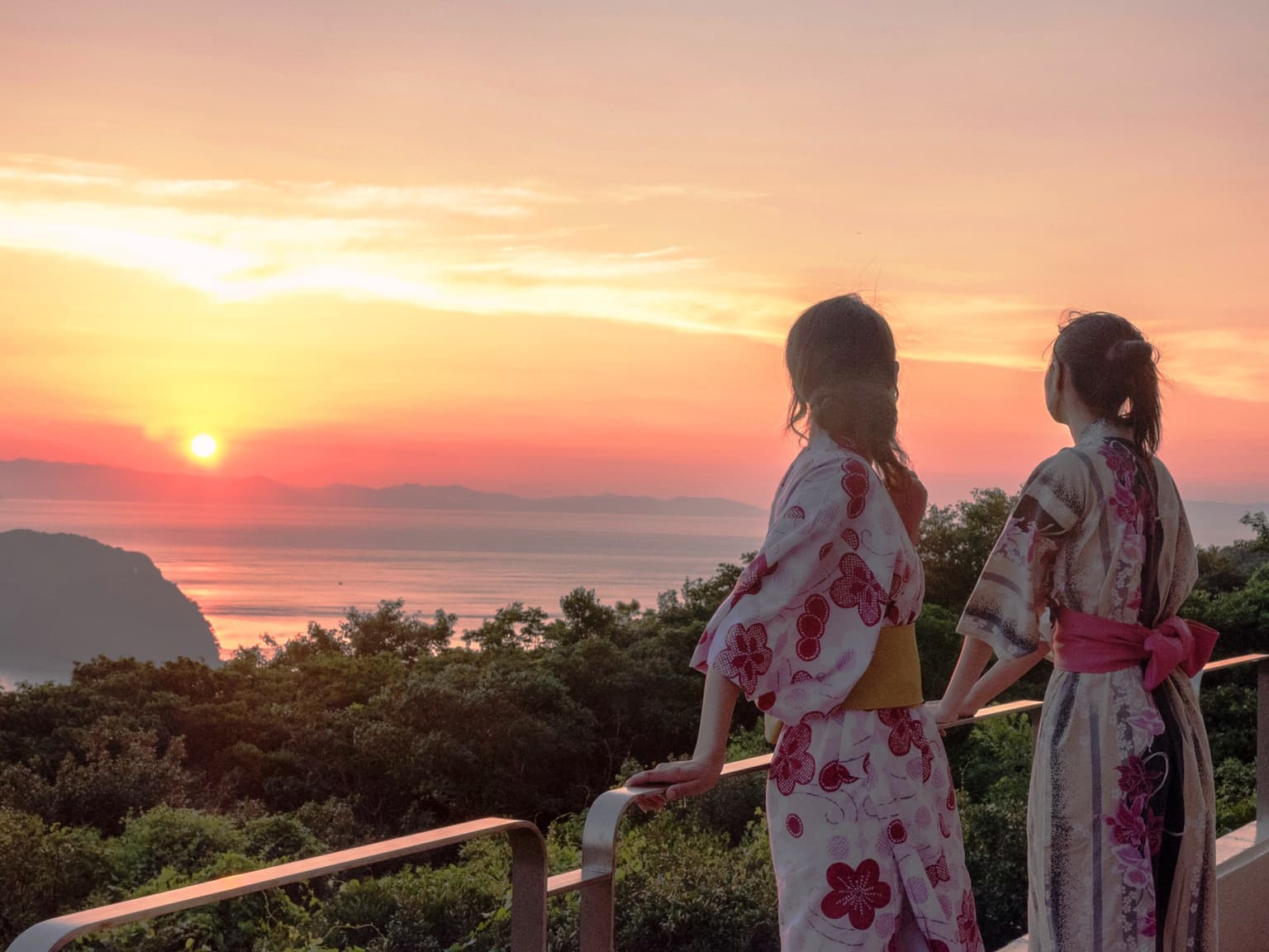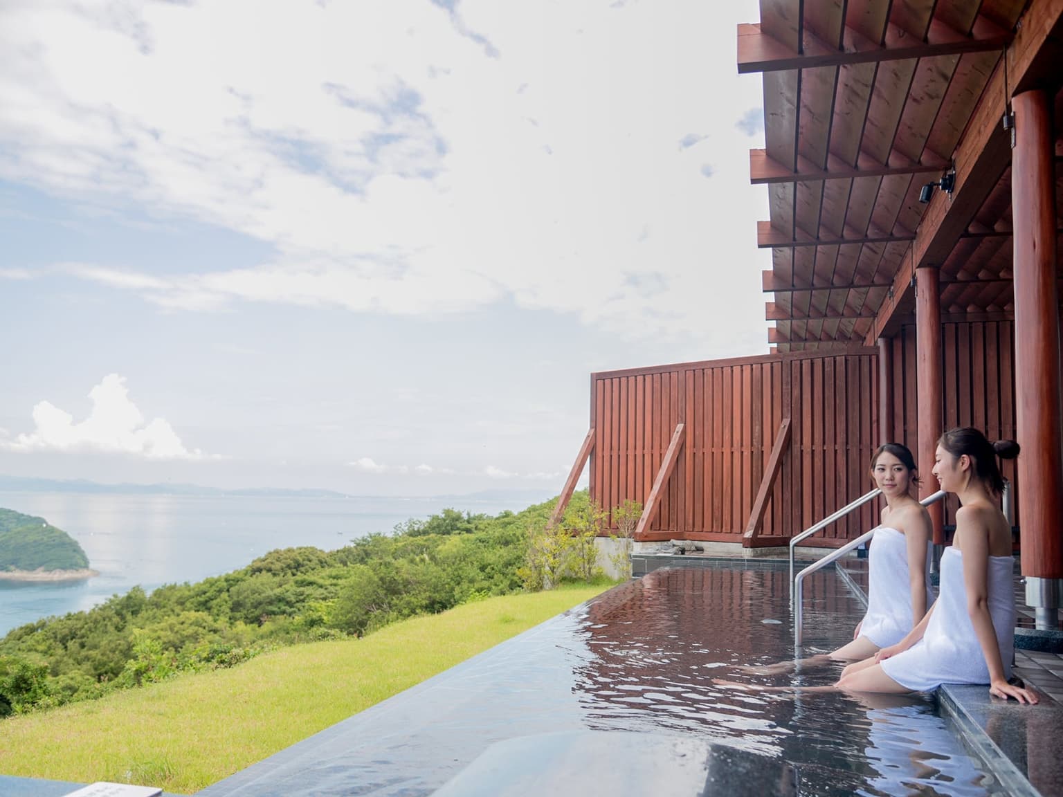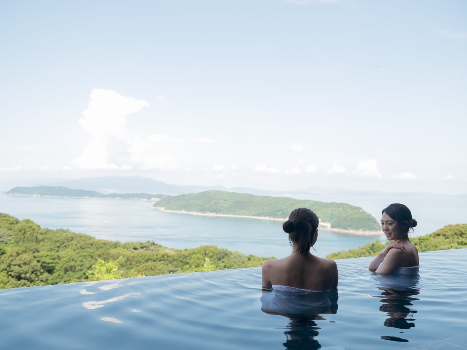 紀淡海峡を一望できる一際目立つ山頂に建ち、大阪から車で約一時間半と気軽に行ける景勝地。眼前に友ケ島、淡路島が浮かび、はるか四国、六甲の山々を望む景勝地で、磯釣りの名所でもある。友ケ島にはハイキングコースが開かれ、海水浴もできる。敷地内に気軽にキャンプが楽しめるオートキャンプもある。近くの見どころに淡嶋神社があり、3月3日のひな流しが有名。春の桜鯛・夏のハモ・冬のクエ等、四季折々の料理が自慢の宿。