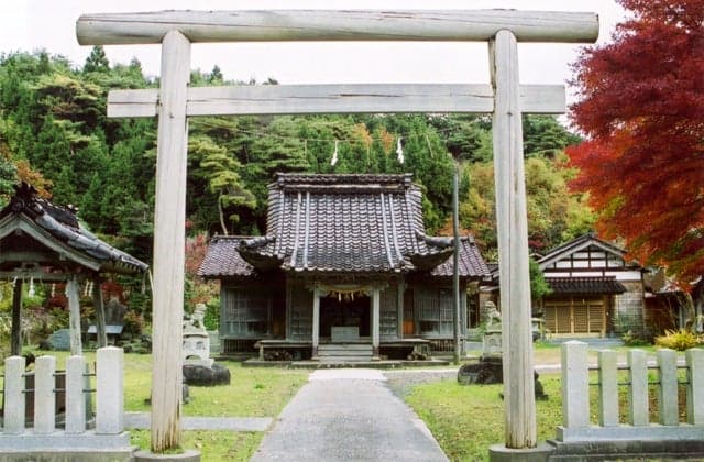 能登國大屋荘の地頭で、『平家物語』でも著名な鎌倉武士の長谷部信連公を祀る。信連公が建保6年(1218)の逝去に先立ち自作の肖像を刻んで大町来迎寺の御影堂に安置したのが、当社の起こりという。江戸時代には武健大明神と称し、昭和10年由縁深い穴水城の麓の現在地に移転した。寛永21年(1644)建立の本殿は神社建築に特異な禅宗様で、殿内の宮殿は漆塗りに極彩色を施した唐破風の精緻なものである。
