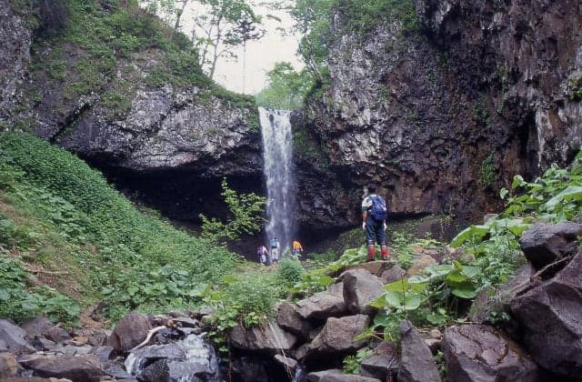 秘境中の秘境。オーバーハングから一気に落下し、滝壷がないのでかなりの迫力。さらに上流は大小11の滝。