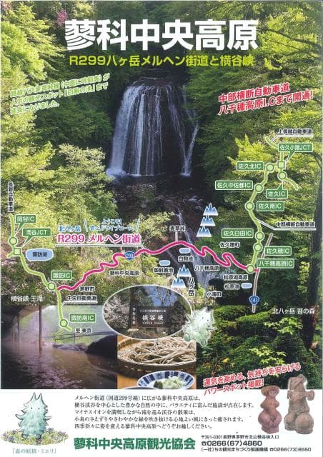 - JR茅野駅からバス停「横谷観音入口」まで約40分 中央道諏訪ICから約45分