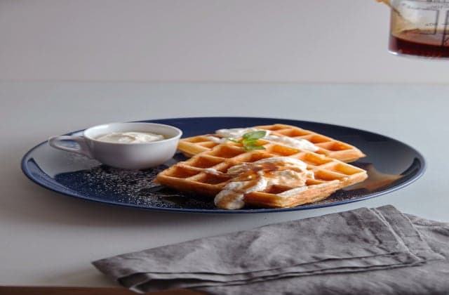 甘酸っぱいルバーブのジャムを添えたパンケーキが大人気のカフェは、自然光がたっぷり入る開放的な店内?