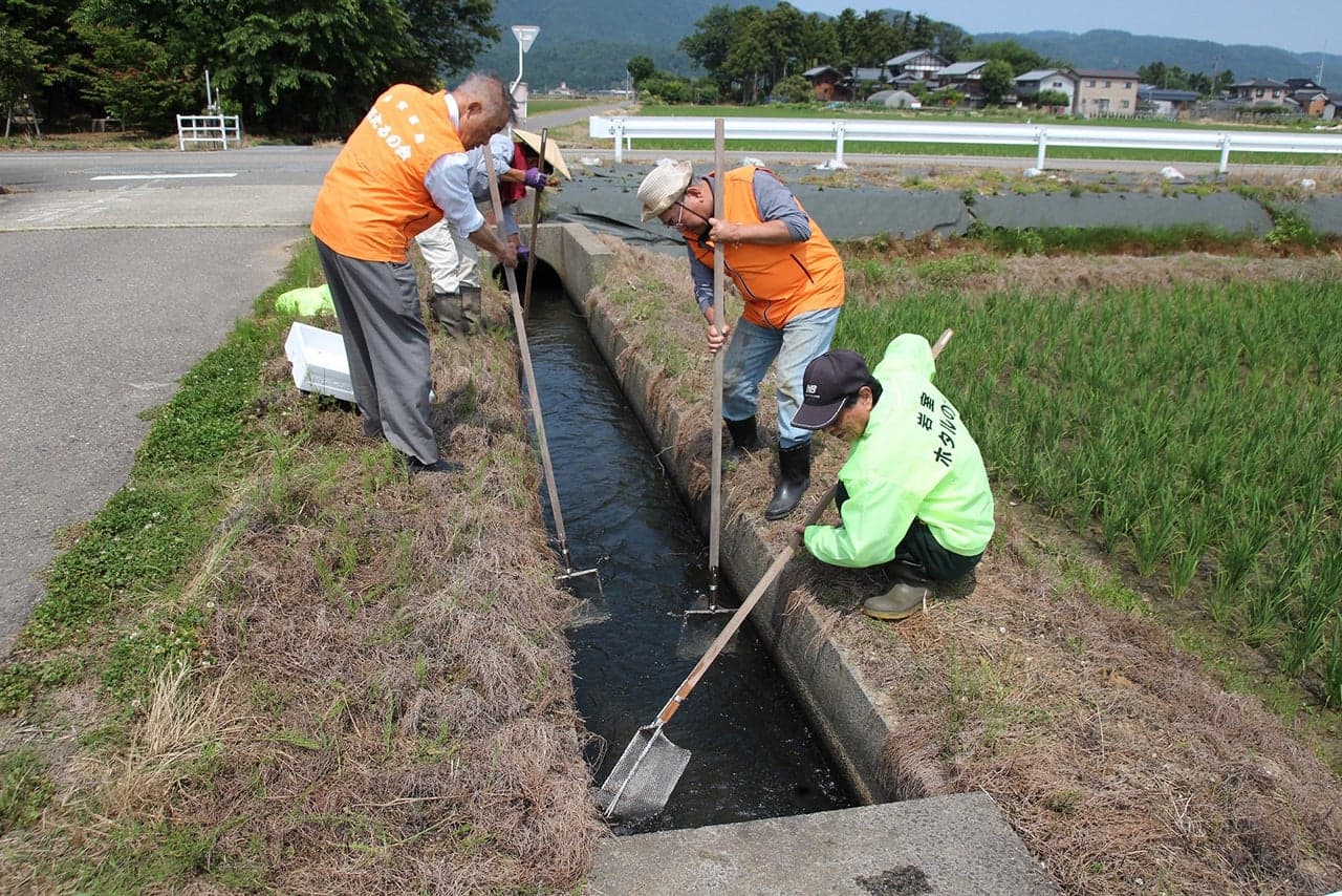 毎年「岩室温泉ほたるの会」を中心に沢の整備やほたるの餌のカワニナの放流を行い、蛍の保護育成に努めています。