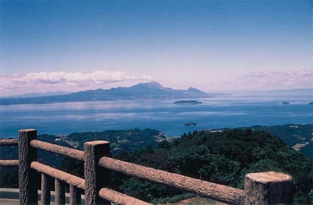 標高586m、天草第2の高峰。山頂までは2つのルートがあり、いずれも車で行くことができる。山頂の展望台からは、天草五橋をはじめ、北には雲仙普賢岳、南は八代海の向こうに鹿児島、東は阿蘇、西は天草下島と、360度のパノラマ展望が楽しめる。山頂を少し下った場所に老嶽神社があり、周囲の森は県の緑地環境保全地域に指定されている。