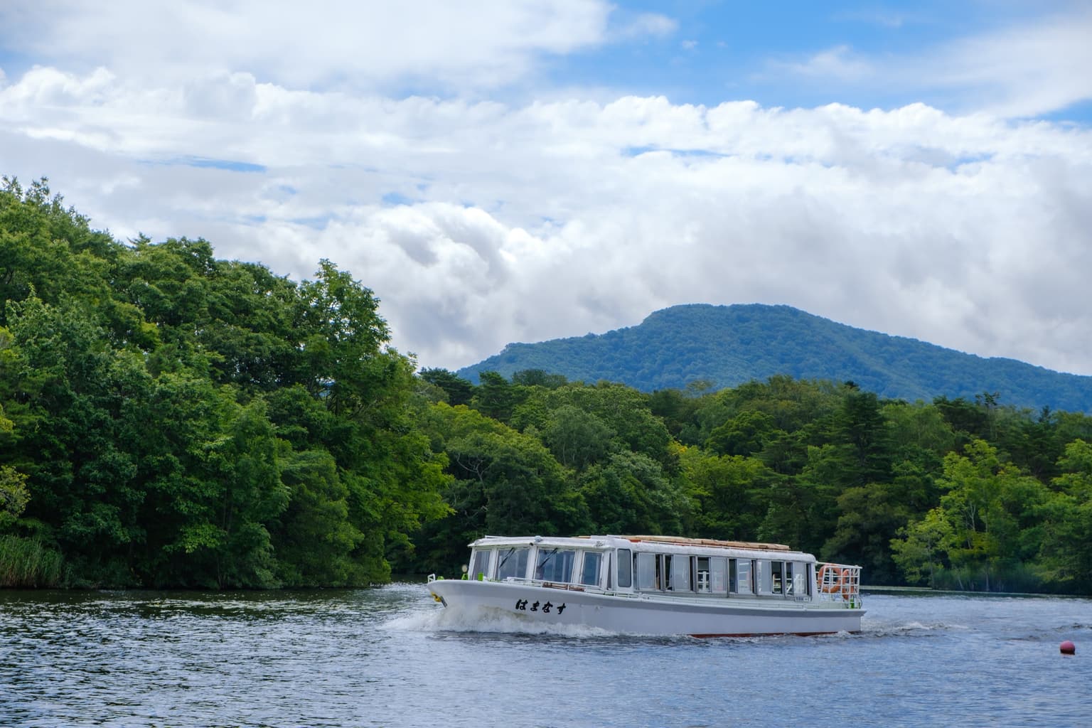大沼湖・小沼湖を巡る遊覧船は、乗船時間約30分で湖上から大沼公園の自然を楽しめます。