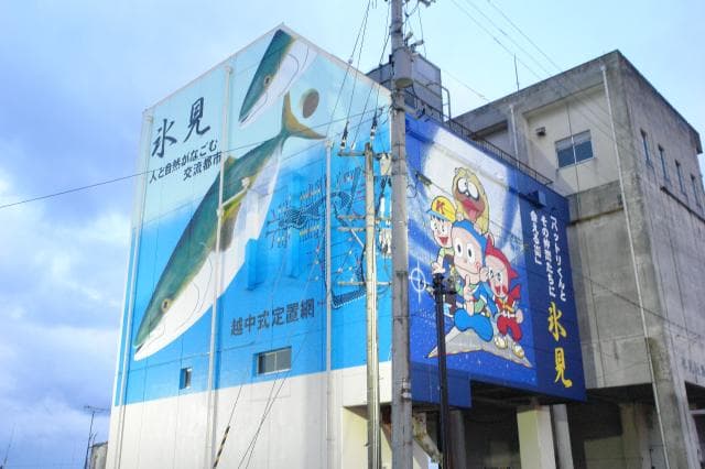 氷見市出身で日本まんが界の巨匠、藤子不二雄?先生の人気作品「忍者ハットリくん」や、富山湾の魚を擬人化した「氷見のサカナ紳士録」などのモニュメントが出迎えてくれます。