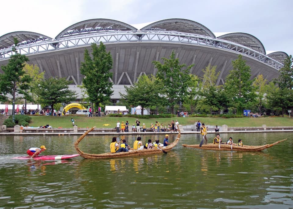 日本庭園は広大な池と滝を中心とした日本の伝統的な築山林泉式(つきやまりんせんしき)庭園で、春から初夏のつつじ類、秋のハギ、冬の雪吊りなど四季折々の風情を楽しむことができます。