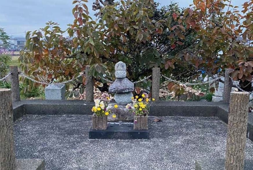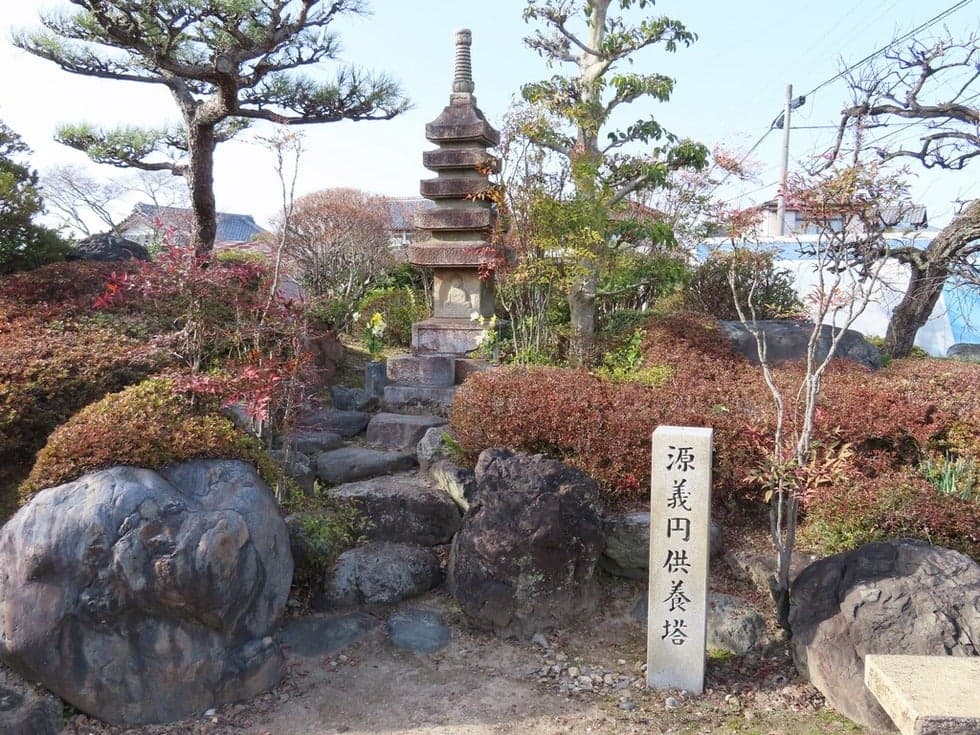 平安時代末期の養和元年(1181年)2月4日、「平清盛」病死。東国源氏は、勢を得て京へ攻め上ります。3月10日、源氏を迎え討つため、平家は「平重衡」を総大将として、杭瀬川(岐阜県大垣市)を渡り右岸の墨俣側(上下宿)に陣しました。一方、源氏の将「行家」(新宮十郎蔵人)は、左岸の羽島側(小熊)に着陣しました。「源頼朝」は、応援のため弟「源義円」をつけ、西上させたが合流せず、二町隔てて軍を整えました。「義円」は、「行家」に先陣されては兄「頼朝」に合わす顔がないと考え、唯一敵陣側の西岸にひそみ、夜明けとともに『義円は今日の大将軍なり。』と名乗って、先陣のさきがけをしようと夜明けを待っていたところ、見廻り夜警兵に見とがめられ『兵衛佐頼朝の弟で卿の公義円という者だ。』というが早いか勇敢に戦い討たれました。源氏は戦利あらず、尾張源氏の「泉太郎重光」兄弟討死し、「行家」の子「太郎光家」兄弟は「平忠度」に捕らえられました。敗れた源氏は退き、矢作川の東岸まで退き東国源氏の大兵来たると宣伝し、勢を盛りかえして遂に平家を亡すことになります。「源義円」は、「頼朝」の異腹の弟で「義朝」の妾「常盤御前」の子の「義経」と同腹の兄にあたります。兄の挙兵を聞き、比叡山の僧兵のごとく坊主頭を頭巾に包み、墨染の衣を来て鎌倉へ駈け付けたと思われます。墨俣川合戦で悲運の生涯を閉じました。25歳でした。里人は、義円地蔵を刻み、堂を建て、毎年3月10日に供養を続けています。源平墨俣川古戦場に義円公園があり、義円地蔵・供養塔・源平墨俣川合戦場碑が建てられています。義円公園より150m西に「源義円」の墓があります。