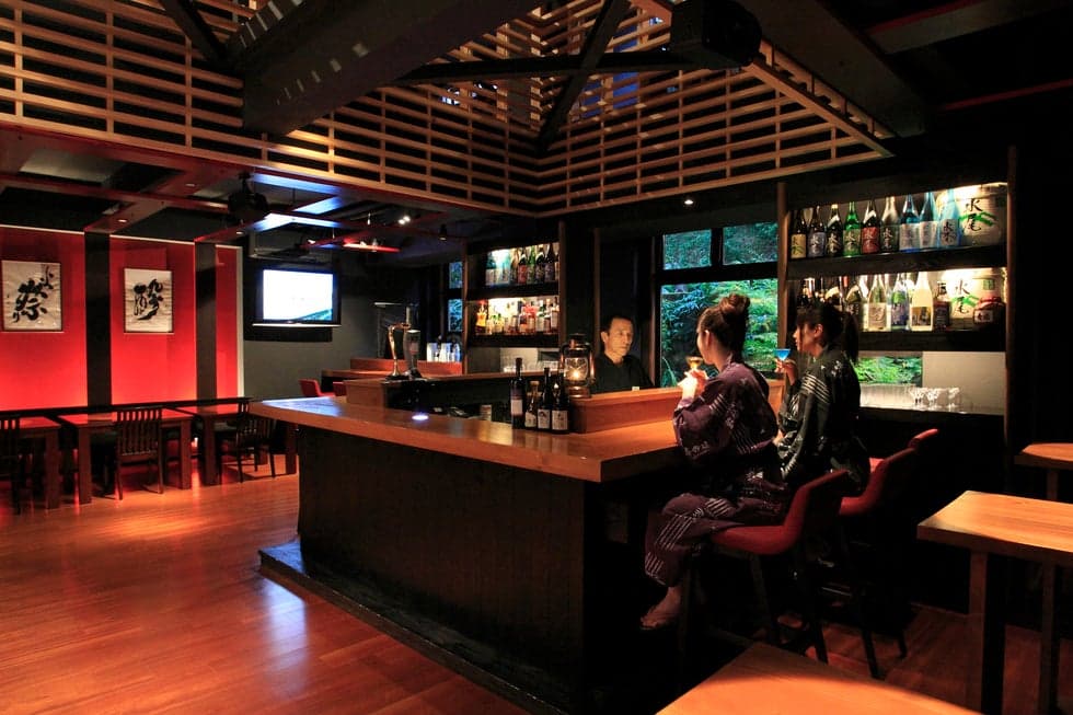 村のシンボル大湯の目の前。和モダンなバーが併設された湯宿。無料でお入りいただける貸切風呂も好評です。
