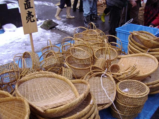 農家の人々が竹やわらなどで作った生活用品や民芸品を持ち寄り開かれる市として、江戸時代から始まったと言われる歴史ある市です。