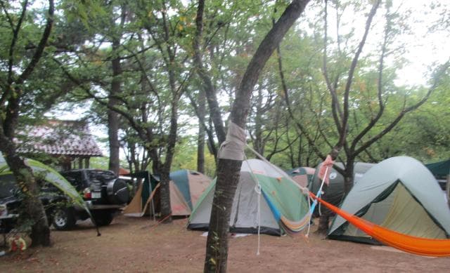 能登のシンボル・見附島のすぐ側にある野営場。海からの心地よい風と林間の程よい日陰が心地よく、敷地内は芝地です。周辺には公園が整備され、広場やテニスコートなどもあります。夏には海水浴場も開設されます。