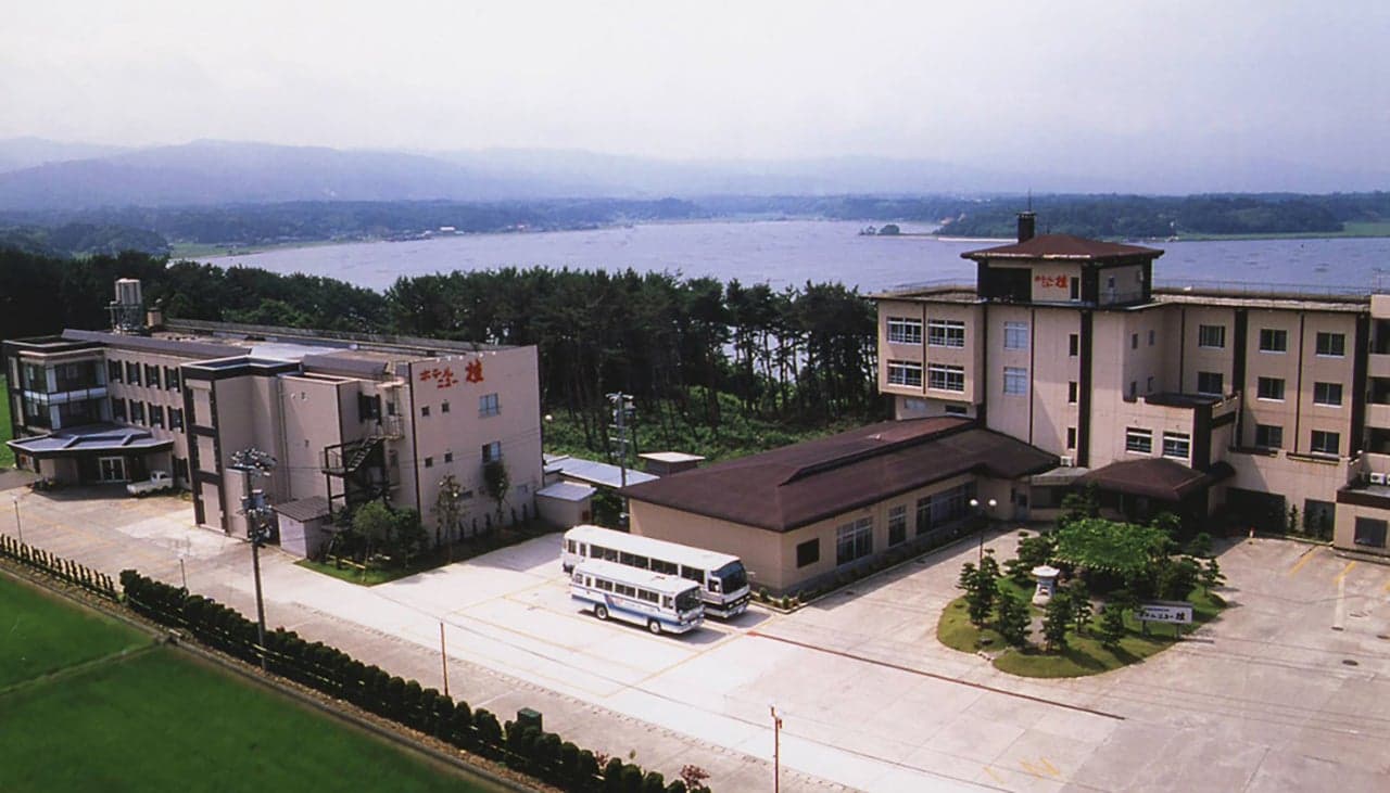 湖畔の高台に建ち、客室より加茂湖、大佐度山脈を眺望できる佐渡屈指のロケーションを誇り、大佐度山脈に沈む夕日、加茂湖に映る夕日がきれいです。温泉はその昔、傷ついた朱鷺が湯あみに飛来したという温泉です。付近には、椎崎諏訪神社があり5月から10月までの第1土曜日に薪能が行われています。