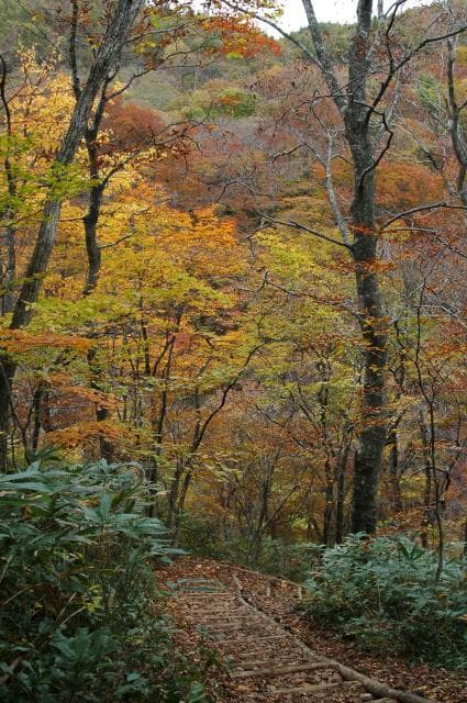 阿武隈川沿いに整備された遊歩道。コースのアップダウンが激しいので、体力に自信のある中級者向けです。コース入口の駐車場の近くには、全国の巨樹・巨木百選に選ばれた剣桂があります。