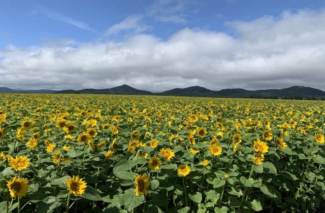 弟子屈夏の風物詩!毎年場所が変わるひまわり畑!元気いっぱいに花を咲かせたあとには、土壌と一緒に耕され、「緑肥」として、次に栽培する農作物を育ててくれるのです。