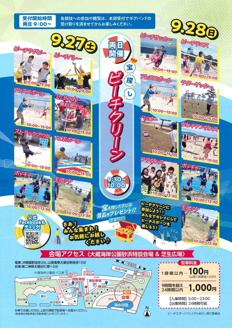大蔵海岸で大人も子どもも楽しめるビーチスポーツフェスタが開催されます。各種目・サークルのデモンストレーションを開催!教室&ゲームなどが体験できます。