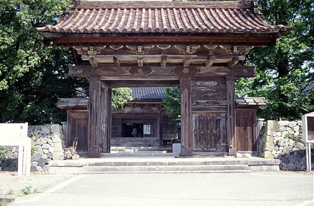 城端別院・善徳寺に建立されていた門を譲り受けた山門が県指定文化財。