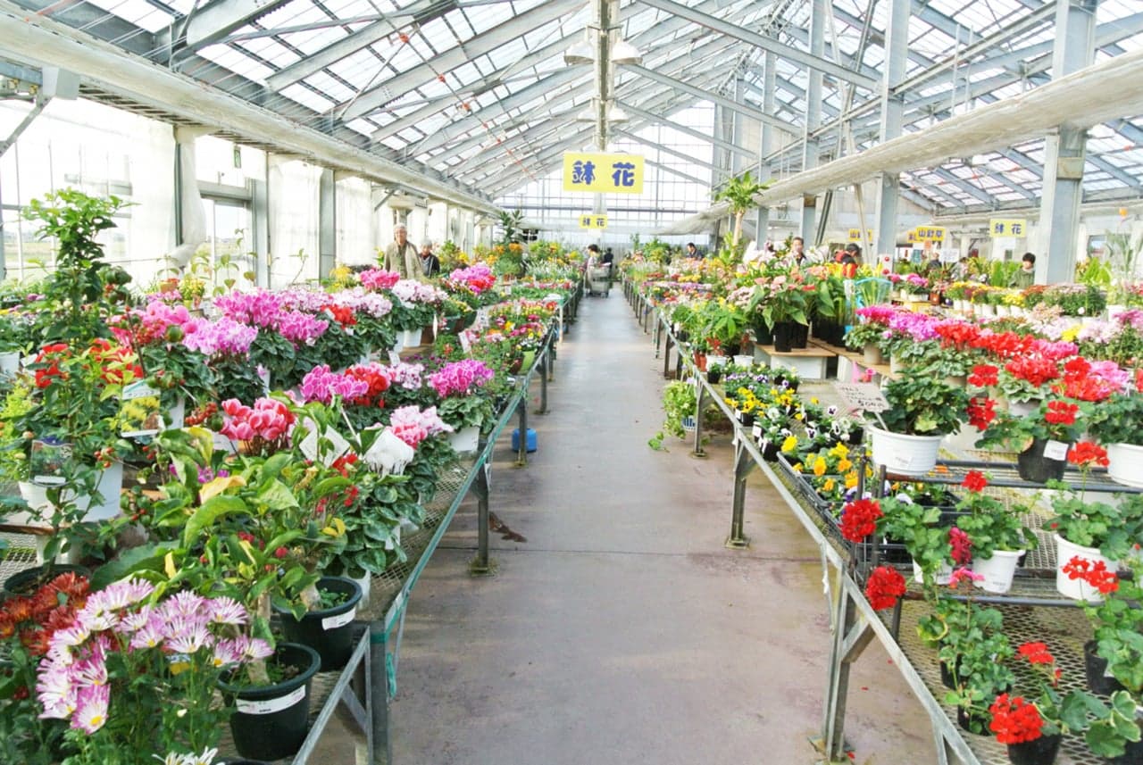 ガラス温室では、鉢花、花木を中心に、花壇苗、・観葉植物・洋ラン・果樹苗木・庭木・盆栽・園芸資材などを販売。花夢里にいつは買い物目的だけではなく、館内を眺めているだけでも新発見があり、とっても楽しい所です。