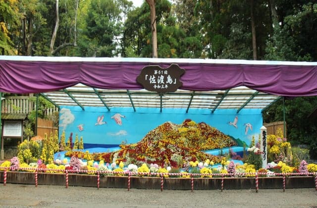 越後一宮彌彦神社境内で開催される新潟県菊花展覧会「弥彦菊まつり」は質、出品品目において全国随一の規模を誇る菊花大展覧会です。いわゆる菊人形展と異なり、1年間丹精に技術の粋をこらした数多くの作品が出展され、審査が行なわれます。 毎年テーマを変えて作られる3万本の挿芽小菊による「大風景花壇」は大人気を集めています。 秋の越後路の風物詩として親しまれている「弥彦菊まつり」に是非、お出かけください