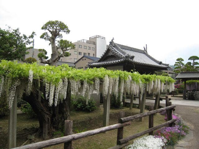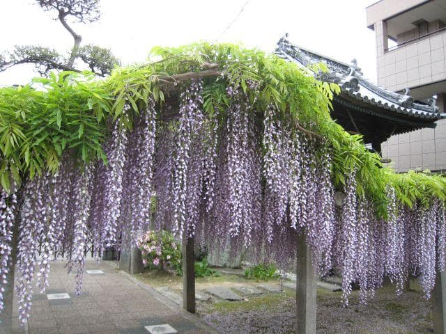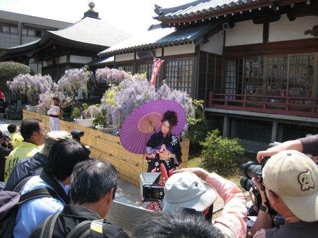 町の花に指定され、町民に親しまれている「藤」。藤まつりには、毎年多くの人々が町内外から訪れます。メイン会場となっている地福寺の境内には、紫藤と白藤の藤棚があり、なかでも紫藤は樹齢200年余りの巨木で、南北30メートル・東西6メートルの藤棚は、見頃になると花房が1メートルにも及び、訪れる人の目を楽しませてくれます。藤をバックに藤娘の写真撮影会も開催され、多くのカメラマンが集います。優秀作品の表彰もありますのでぜひご参加ください。