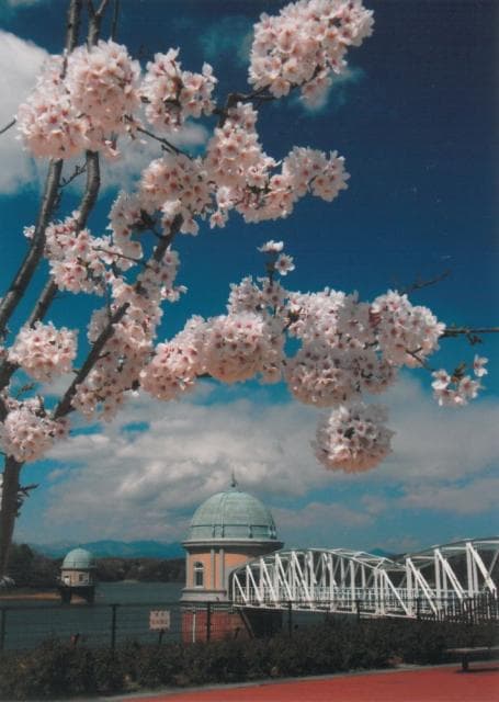 アカマツや雑木の丘陵に囲まれた多摩湖の湖畔には、ソメイヨシノなどサクラが約4万本あって春には花見客で大賑わいになる。特に湖東端の狭山公園の並木は見事。