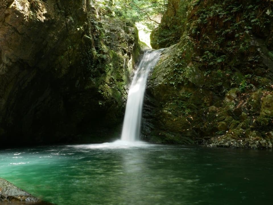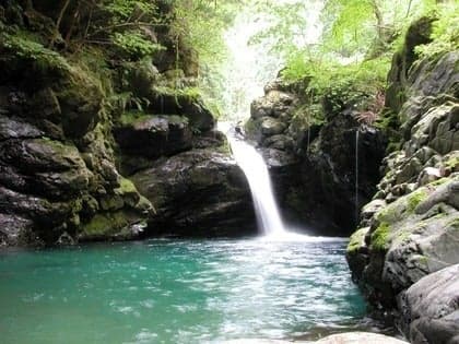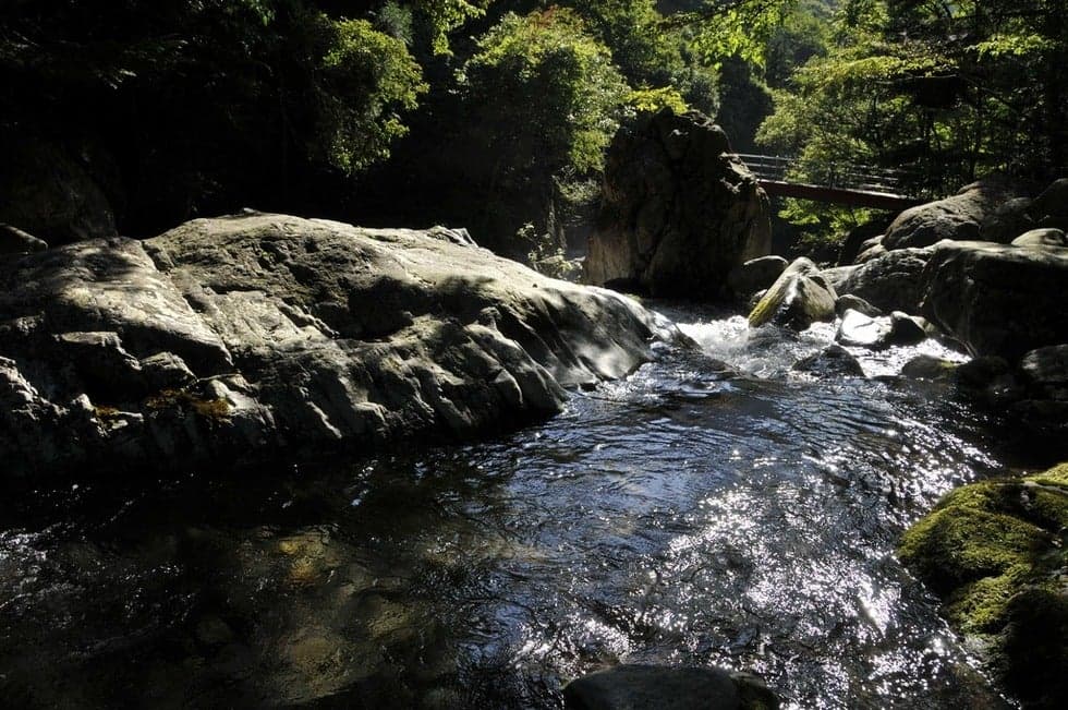 片知渓谷は、美濃市の最高峰である瓢ヶ岳(標高1,163m)のふもとにある延長約6kmの渓谷。渇水期でもここだけはかれたことがなく、増水期にも濁ることがありません。