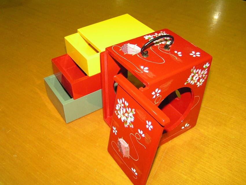 野山への行楽(遊山)や雛まつりの弁当箱として子どもたちが使った三段重ねの重箱。