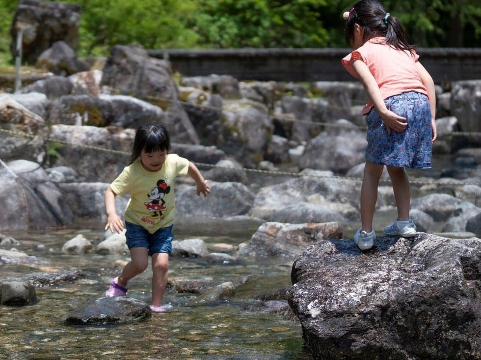 魚釣りや魚の手づかみなど安心して川遊びがができる人工河川「なかんじょ川」をはじめ、ログハウスのバンガローとオートキャンプ場を備えた自然公園で、地元の子どもたちにも大人気のレジャースポット。イワナ・ニジマスなどをワイルドに手づかみで捕ったり、釣り糸を垂らして釣ったりと、小さなお子さんからお年寄りまで、思い思いに川遊びを楽しむことができます。捕った魚をその場で炭火焼きにして頬張れば、心に残る夏の日の大切な思い出になるでしょう。もちろん、魚は持ち帰ることも可能です。ファミリーで、グループで、思う存分自然に親しみ遊びましょう!※事前の予約をお願いします。また、インターネットからのご予約をオススメします。