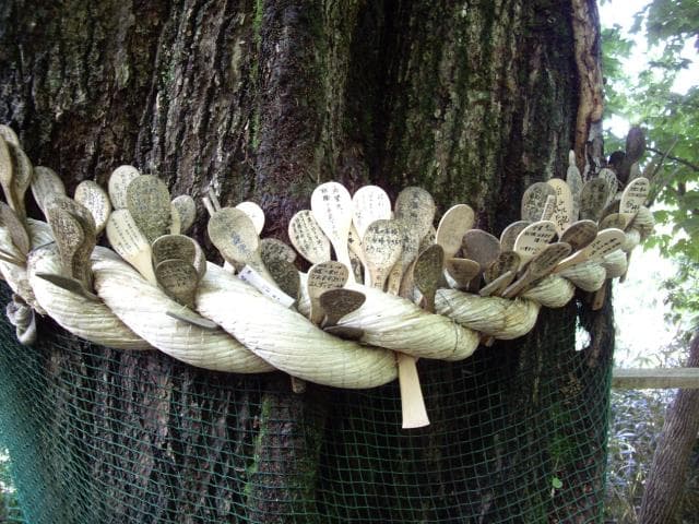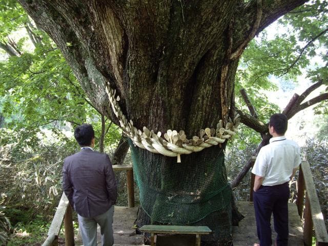 新名木100選、森の巨人たち100選に認定されている樹齢約820年の巨木です。願いのかなう木として尊ばれています。