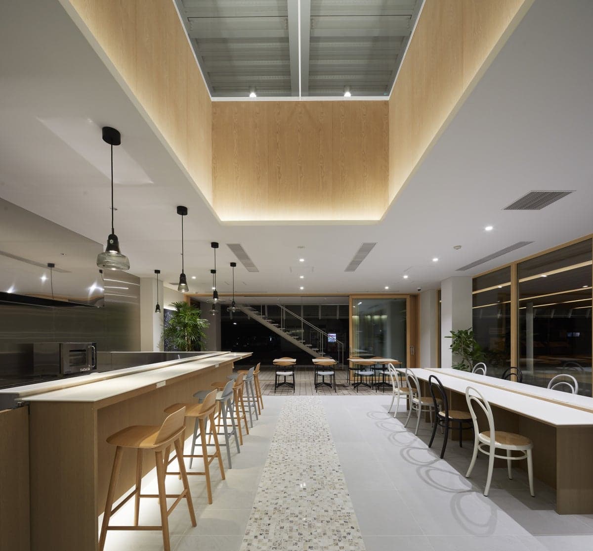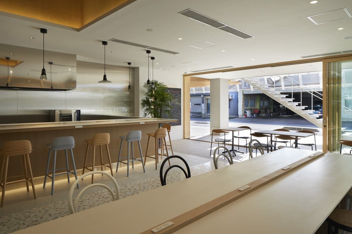 小柳建設内のコワーキングスペースです。 Microsoft Base Niigata-Kamo として、最新事例やモデルオフィスで学ぶ体験型DX発信基地の運営も行っています。 また、地元カフェやベーカリーなどの出張出店など、地域の人との交流の場ともなっています。