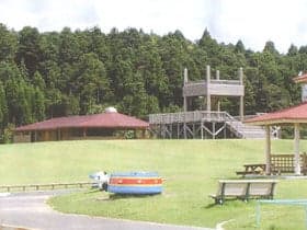 前方後円墳をかたどった休憩棟、古代の砦を連想させる展望台、とりや曳山をイメージした30mのローラー滑り台のある遊具広場がある。大池を渡る水上遊歩道、バーベキュー広場、ボート貸出もあり、自然を満喫できる場所です。