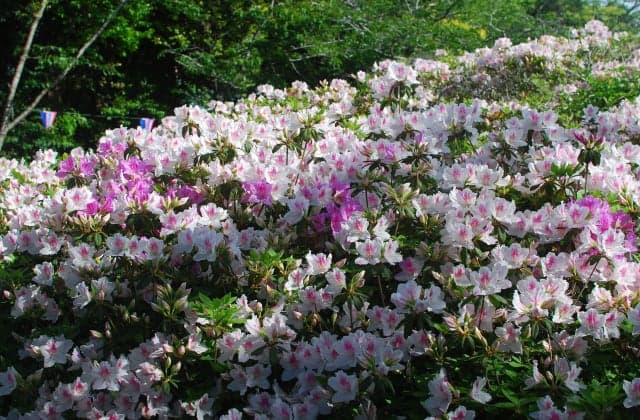 4月中旬?5月上旬、東庄町の雲井岬(くもいがさき)つつじ公園で『つつじまつり』を開催。雲井岬つつじ公園は東大社(とうだいしゃ)の裏山にあり、東大社の神苑だった広大な敷地内にはオムラサキなど2000本近い多くのツツジが植栽されている。雲井岬は、地名のとおりかつては内海に突き出した岬だった場所。