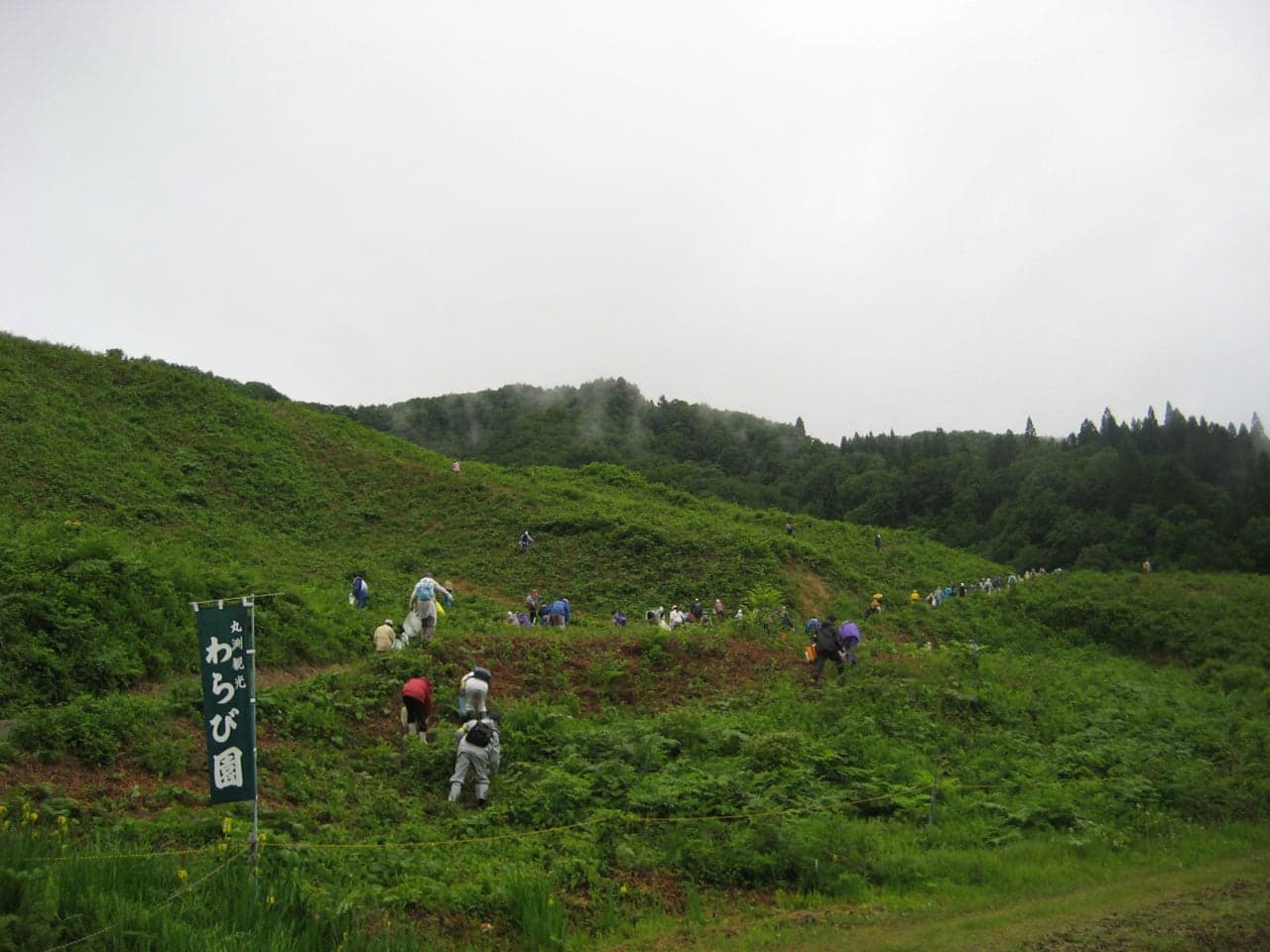 シーズン中はたくさんの人が訪れ、新鮮なわらびを収穫しています。