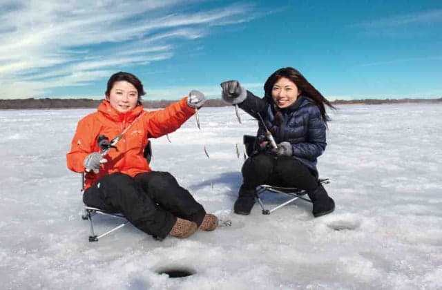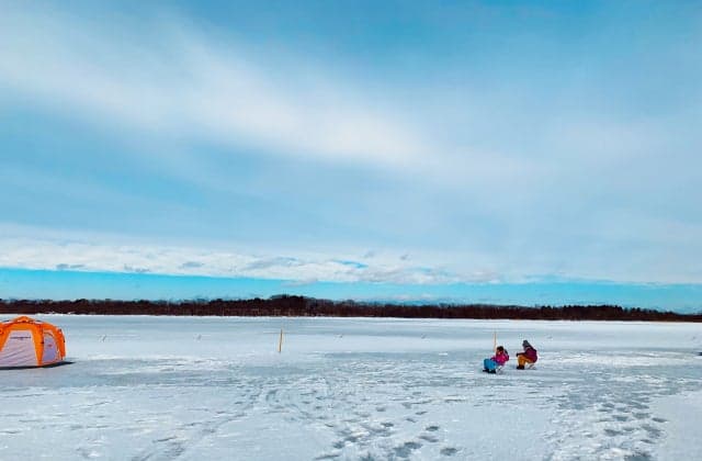 姉沼は、天然わかさぎが湧いてくる圧倒的な資源量で有名。例年1月下旬から3月中旬の安全な厚さに氷結した期間、わかさぎ釣りを体験することができます。駐車場やトイレを完備し、道具レンタルもあるので、初めての方や女性の方、観光でぶらりと立ち寄った方でも気軽に楽しめます。釣ったわかさぎを「市民の森食堂」で天ぷらにしてもらうと、まさに絶品。手ぶらパック(道具レンタル)は数に限りがあるので、予約がおすすめです。