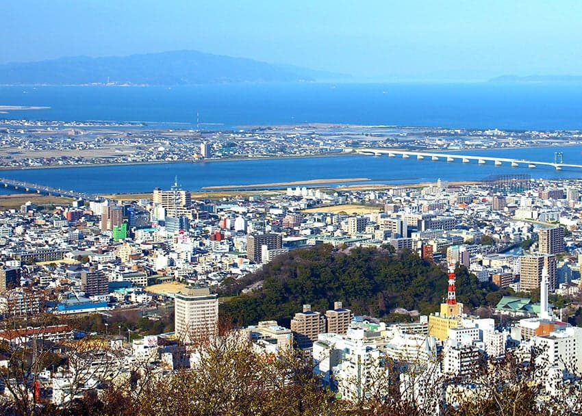 城山は、市の中心部にありながら原生林が生い茂っている。形がイノシシに似ていることから「猪の山」といわれ、また、その地勢が中国の謂水の風景に似ているので「謂津」とも名付けられた。徳島城跡一帯を整備した徳島中央公園内にある。(撮影協力:ホテルクレメント徳島)