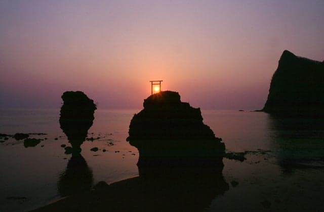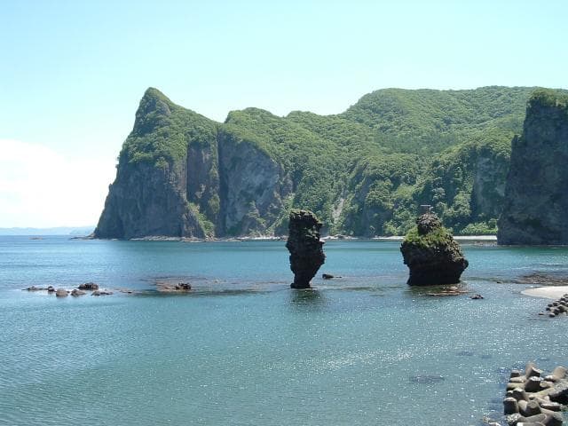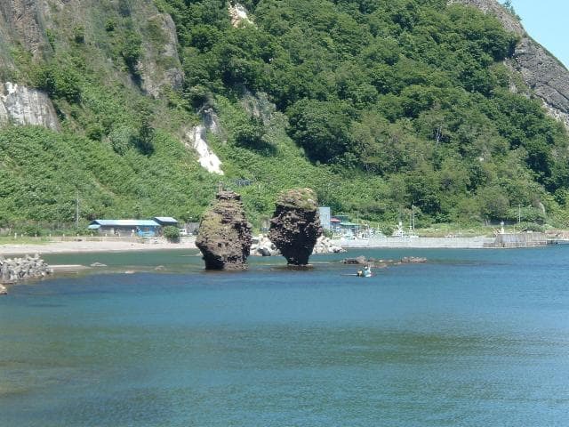 ローソク岩と同じく奇岩として知られ、商売繁盛をもたらす七福神の「えびす様」、「大黒様」に似ていることから、そう呼ばれるようになりました。写真撮影の背景には最適。