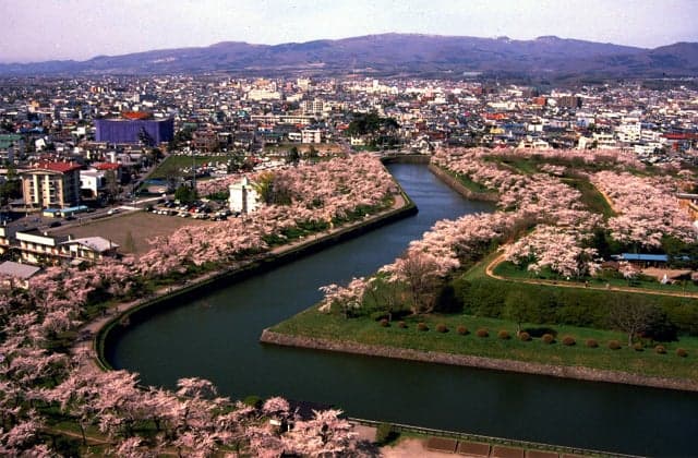 5つの突角をもつ星型の城郭として有名な五稜郭は、北海道でただひとつの特別史跡である。その五稜郭をとりまく公園には、1,680本の桜が植えられている。大正3年に植えられた染井吉野、南殿、関山、普賢象といった老木の数々が、次々と花を開く。