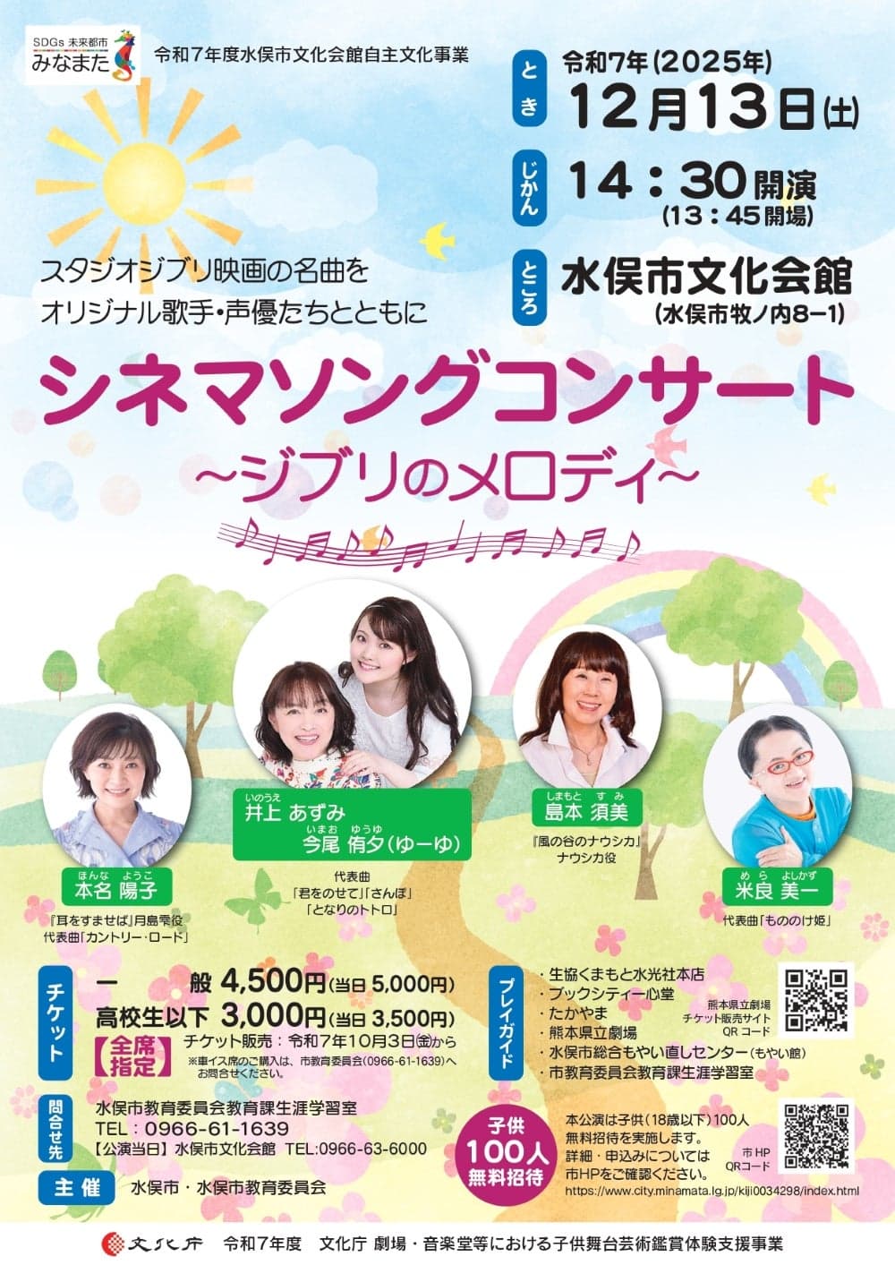 スタジオジブリの名曲を生み出した、オリジナル歌手や声優たちが水俣にやってくる