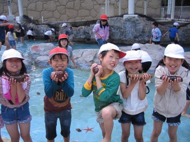 タイドプール(潮が引いた後の潮だまり)を自然に近い形で再現。てこね寿司づくりや干物づくり等の体験ゾーンがあり雨でも遊べるのが嬉しい。