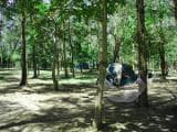 伊江ビーチに隣接する、モクマオウに囲まれた広大なキャンプ場。