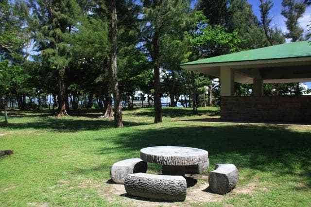 - キャンプ場(800人)、海水浴場、遊歩道、広場、野球場、テニスコート、ビーチバレーコート、ゲートボール場、売店、シャワー、テラス