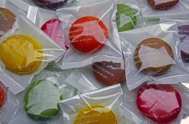 大理石の粉砕機で皮を剥いた生アーモンドを粉にして自家製アーモンドプードルを作り、香り豊かでソフトな食感の「マカロン」をひとつひとつ手作りしています?