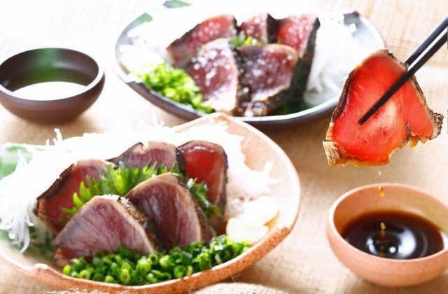 目の前で豪快に焼き上げる鰹のタタキをご賞味ください。