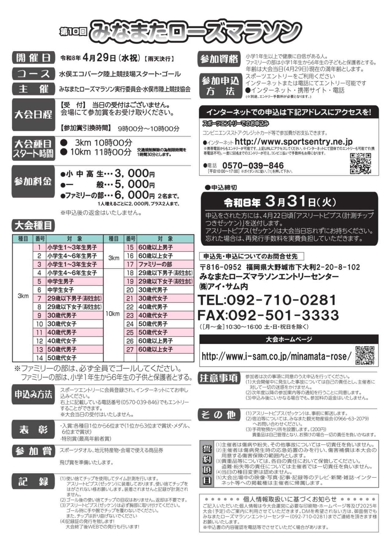 - 雨天決行 【参加賞引換時間】9:00~10:00 【スタート時間】10:00~3㎞スタート/11:00~10㎞スタート