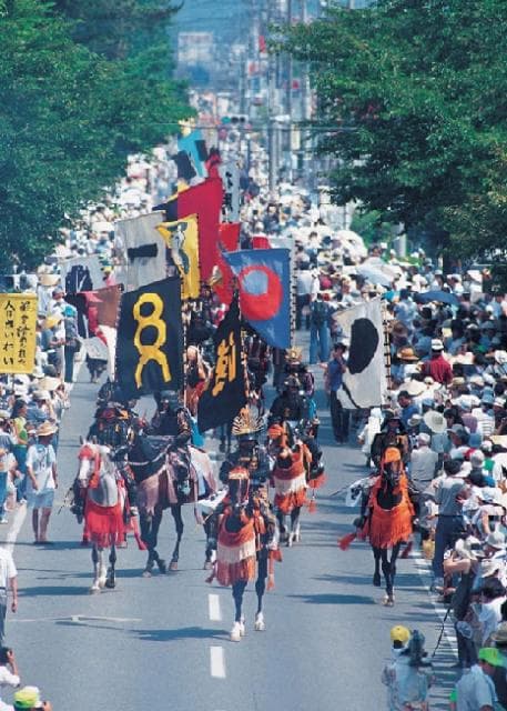 毎年、7月最終土・日・月の3日間、400余騎の甲冑騎馬武者が出場します。勇壮華麗にして豪華絢爛に繰り広げられる戦国絵巻です。「相馬野馬追」は世界一の馬の祭典とも言われています。