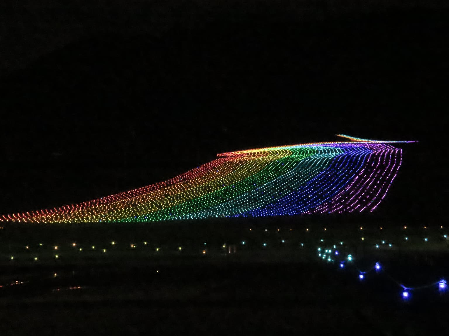 霊峰白山へと続く加賀禅定道の入口にあたる白山一里野温泉スキー場を、ソーラーLEDライトで彩ります。イルミネーション設置期間中は毎日、日没から4時間点灯し、30分ごとに光の色が変化します。