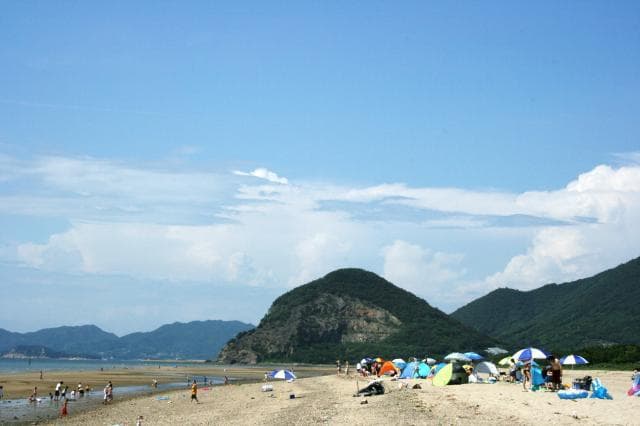 瀬戸内海国立公園にある、白砂に老松が這う遠浅海岸。