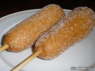 お祭りの屋台等でよく見かける「フレンチドッグ」。通常はケチャップをかけていただきますが、釧路は砂糖をまぶしていただきます。 炭鉱・漁業関係等の重労働者が甘いものを好んだという説もあります。