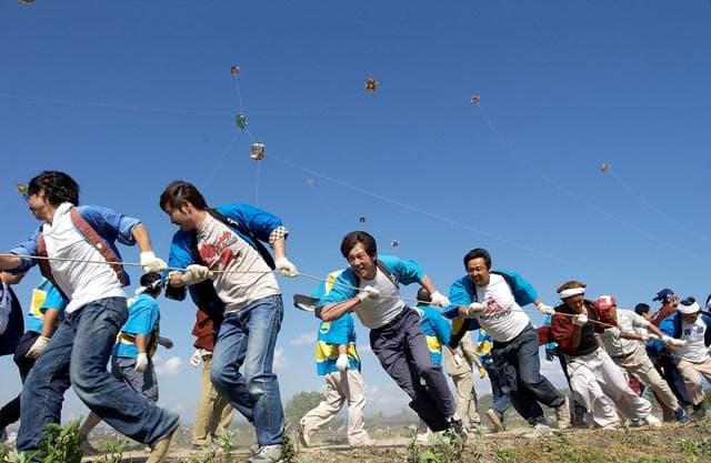 畳約8枚分の大凧が意気あふれる掛け声と共に空に舞う伝統の大凧合戦。360年以上の歴史を持ち、多くの人が粋で趣深い光景を一目見ようと集まります。