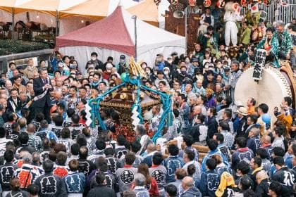 商工業者による商品の展示・即売、山車と神輿の競演、軽食の販売など
