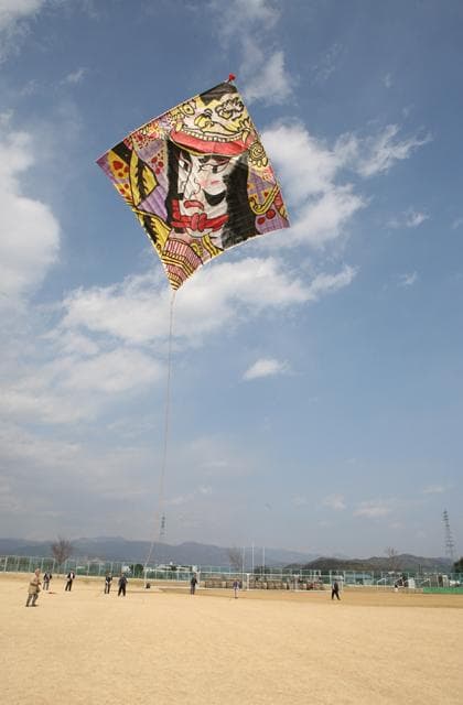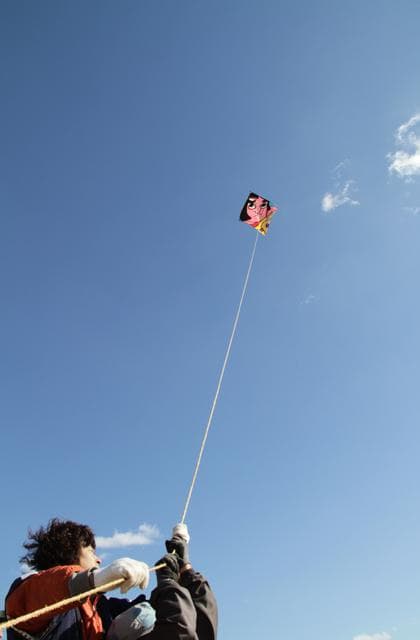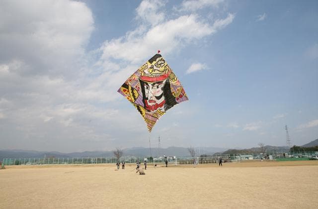 竹と和紙で作られた100畳、270kgにもおよぶ大凧が高知の青い空に舞います。土佐凧は軽くて丈夫で飛翔力があり、日本の郷土凧の中でも傑作と言われています。