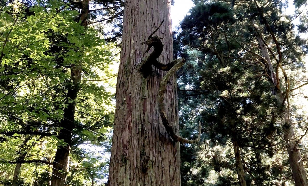 杉並木には竜が昇っているように見える「竜神杉」、大蛇が巻き付いた跡が残る杉、苔むした西国三十三観音などの石仏があり、訪れた方に慈光寺の長い歴史を感じさせます。
